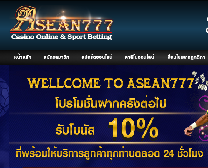ขอต้อนรับท่านเข้าสู่ ASEAN777 เว็บพนันออนไลน์อันดับ 1 ของเอเซีย เราคืออาณาจักรเว็บคาสิโนออนไลน์และเดินพันกีฬา (Sportsbook) อันดับหนึ่งของเอเชีย ท่านจะได้ร่วมลุ้นร่วมสนุกได้อย่างปลอดภัย ไปกับเกมเดิมพันออนไลน์หลากหลายชนิด อาทิ บาคาร่า ฟุตบอล บาสเก็ตบอล เทนนิส สนุ๊กเกอร์ อี-สปอร์ต และอื่นๆอีกมากมาย