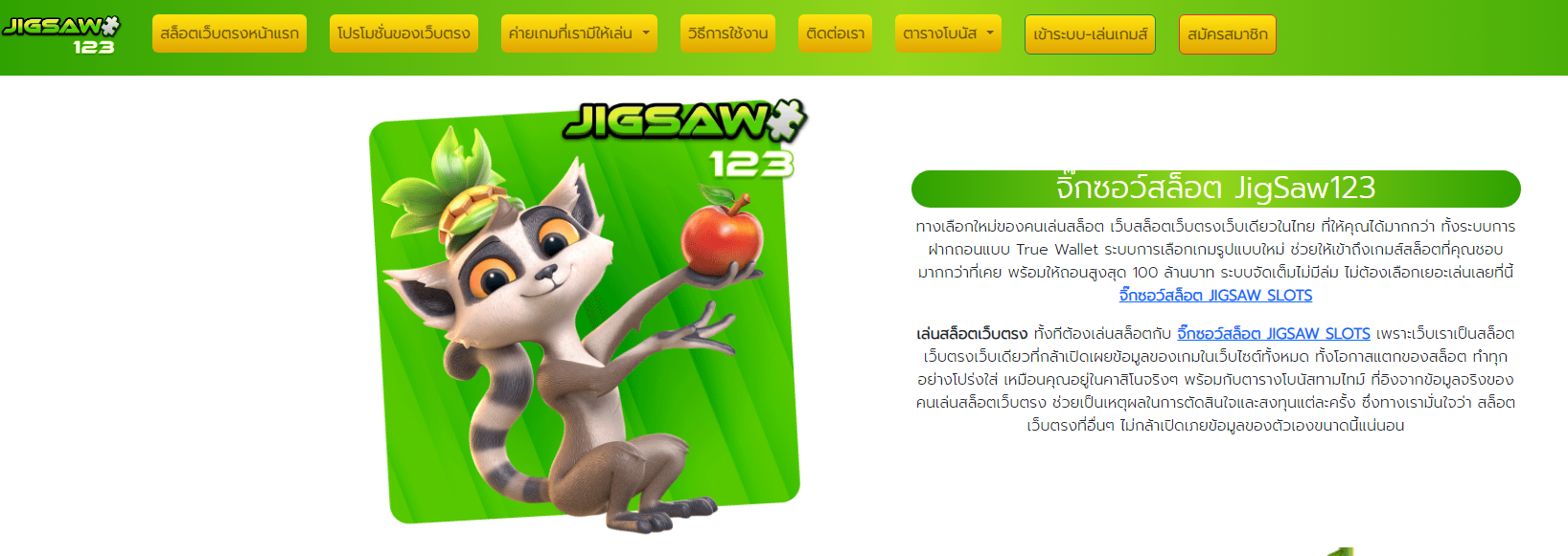 jigsaw123 กลายเป็นระบบฝากและถอนอัตโนมัติที่ดีที่สุดและเร็วที่สุดในประเทศไทยระบบอัตโนมัติที่มีความเสถียรสูงและมีการพัฒนาอยู่เสมอให้ผู้เล่นได้สัมผัส กับความทันสมัยล้ำหน้ากว่าใคร ๆ และยังรวบรวมเกมพนันทุกรูปแบบไว้อย่างครบครันไม่ว่าจะเป็นเกมสล็อตเกมเก่าเกมใหม่หรือสล็อต 3 มิติสมัยใหม่เกมยิงปลามากมาย ให้เลือกเล่น ไปจนถึงเกมคาสิโนเช่นบาคาร่ารูเล็ตไฮโลจากค่าย Sexy gaming, SA gaming, Sexy baccarat, dream gaming, wm gaming, Joker Gaming ค่ายเกมชั้นนำของโลกและยังคอยอัพเดทเกมใหม่ให้กับผู้เล่นตลอดเวลา